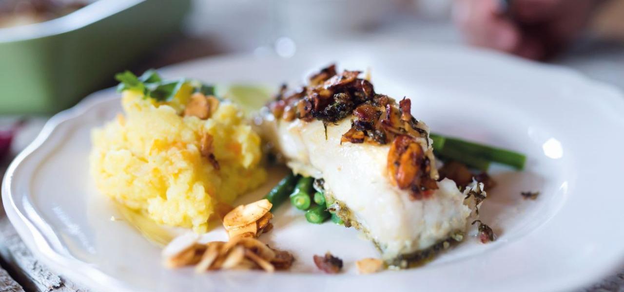 Zanderfilet mit Oliven-Polentacreme